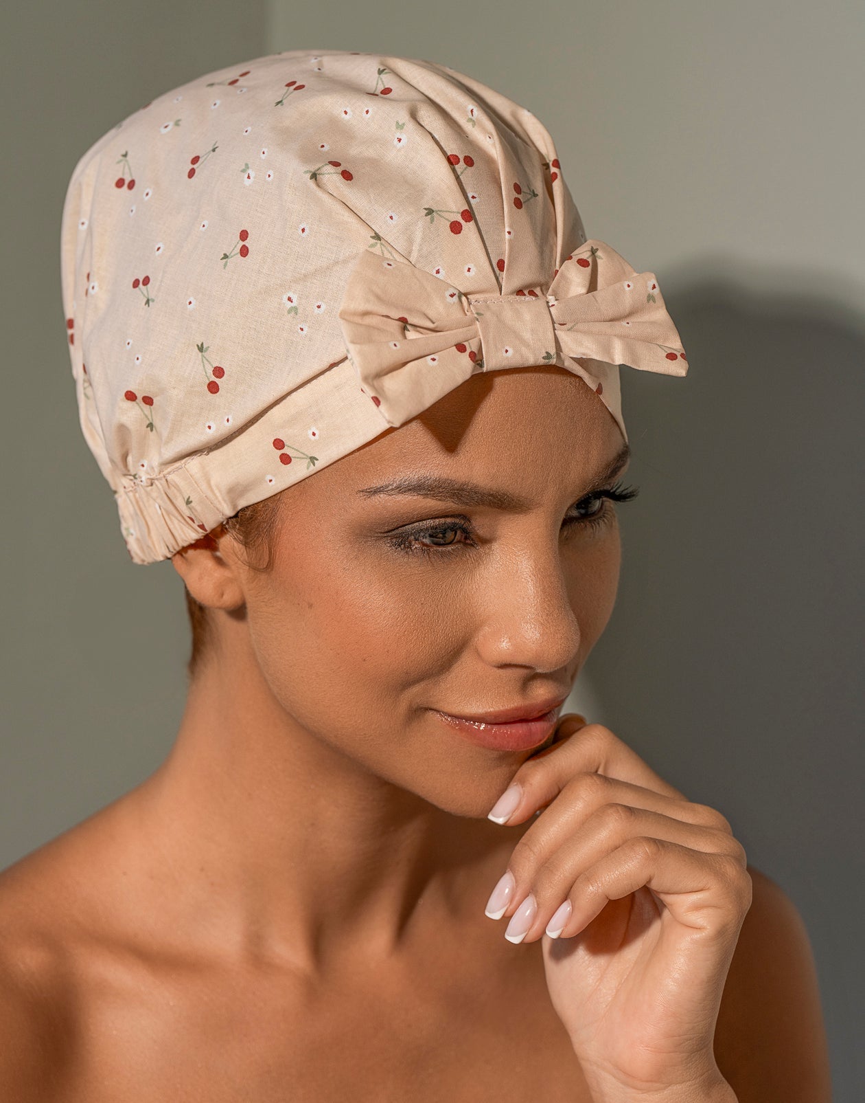 Reste stylée même sous la douche avec notre charlotte imprimée cerises – ton alliée girly pour protéger tes cheveux de l'humidité sans ressembler à un champignon en plastique !