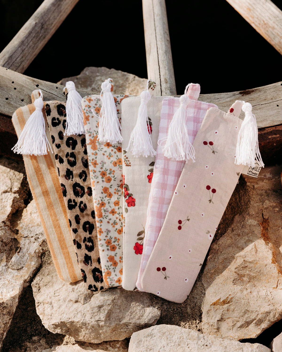 Glisse ton bouquin en cours dans ta pochette à livre (sensation cocooning immédiate). Utilise le marque-page assorti pour garder ta page sans abîmer ton livre (merci, au revoir les coins pliés). Emporte le tout avec toi ou laisse-le poser élégamment sur ta table basse. Simple, efficace, et surtout très chic.