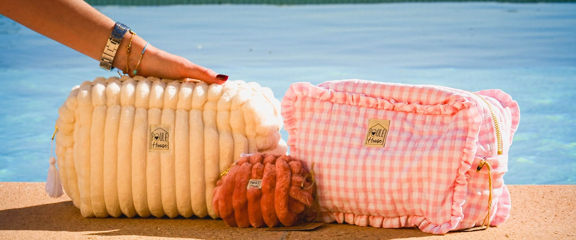 Née en Provence, Poule House respire le soleil, la douceur de vivre et les petits bonheurs du quotidien. Elle accompagne chaque instant avec attention : sortir son ordinateur de son étui au bureau, se démaquiller avec des cotons doux avant de se coucher, envelopper les restes avec ses couvre-plats après un dîner, préparer sa trousse de maquillage pour un week-end… Des gestes qui peuvent sembler anodins, mais qui deviennent des moments de plaisir grâce à des objets pensés pour embellir la vie de tous les jours.